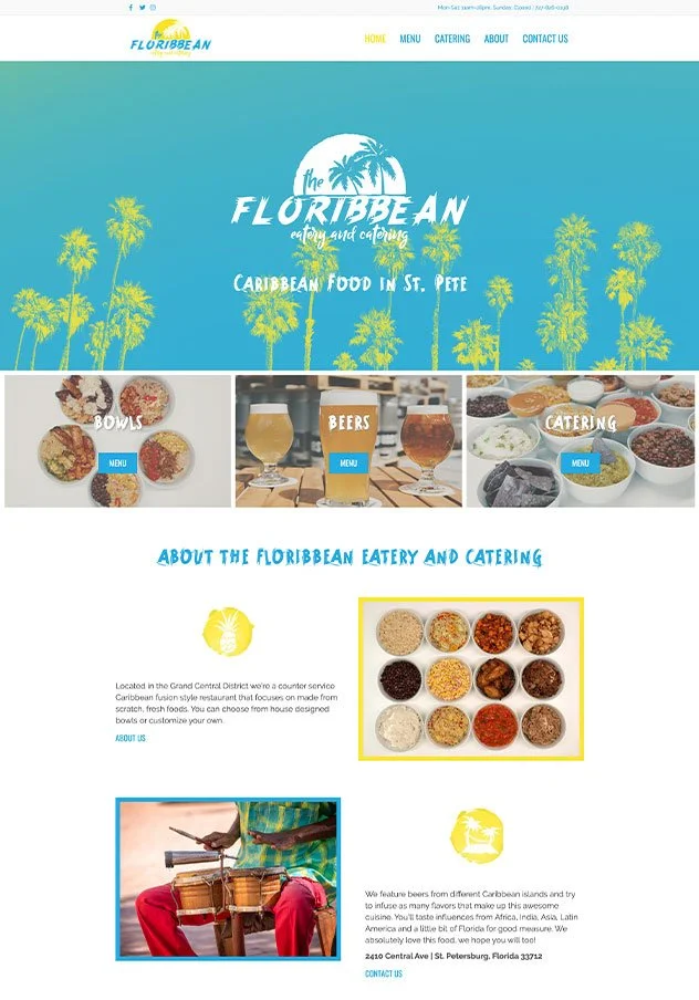 This Caribbean restaurant website is a celebration of bold, tropical energy. The design features bright blues and sunny yellows, with custom graphics inspired by island culture and cuisine. Every element—from decorative patterns to illustrated accents—was meticulously designed to create an immersive experience. The result? A website that feels like a warm ocean breeze, inviting visitors to savor the flavor of the Caribbean before they’ve even tasted the food.